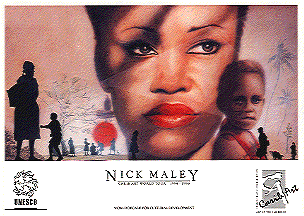 This represents the thoughts of an expatriate Caribbean woman remembering the life she left in the islands. Her history is written in the interaction of the figures. Her relationship with her mother. The child she left for her mother to raise. A child that is a part of her yet alienated. I particularly like the poetic confused perspective whereby her growing sophistication (represented by her bright ear rings) is also the setting sun upon her mothers way of life.